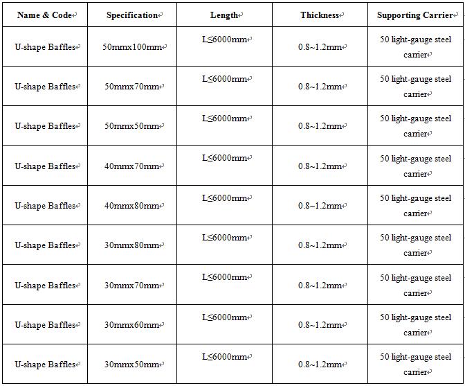 According to the appearance, the open ceiling can be classified into TJ screens, baffles(U-shape), Round Tubes etc.