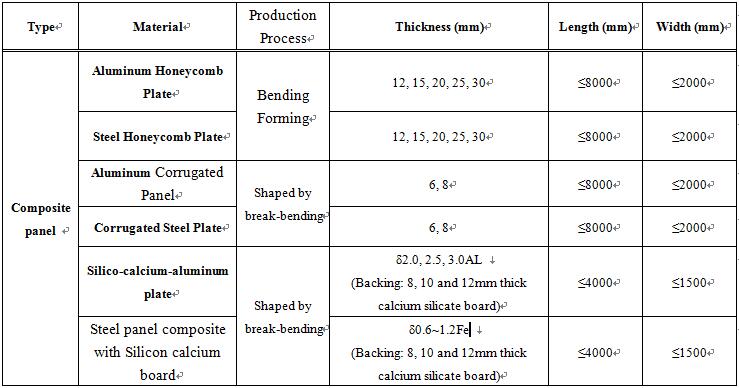 Common Specifications and Dimensions of Composite panel