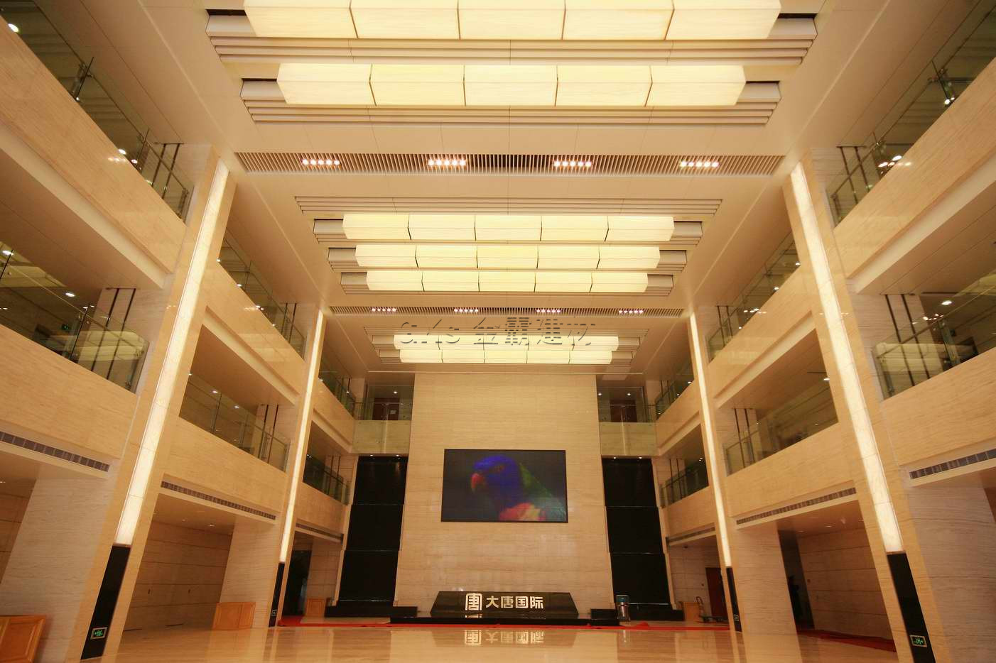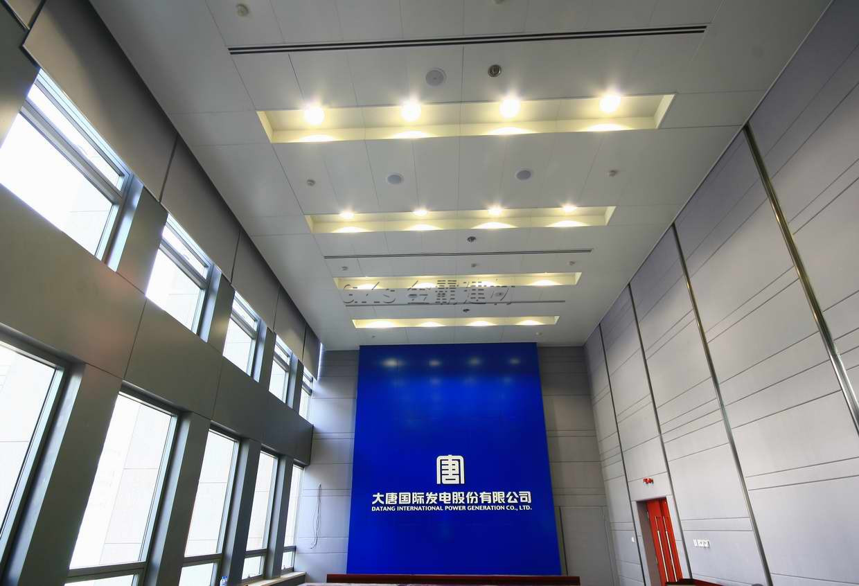 北京大唐电力集团公司总部大楼内部装饰材料以大理石地板及铝板吊顶为主。吊顶多为垂片及铝方板,造型时尚、典雅。与室内灯光及家具等装饰元素和谐相衬,大方雅致,富丽堂皇。