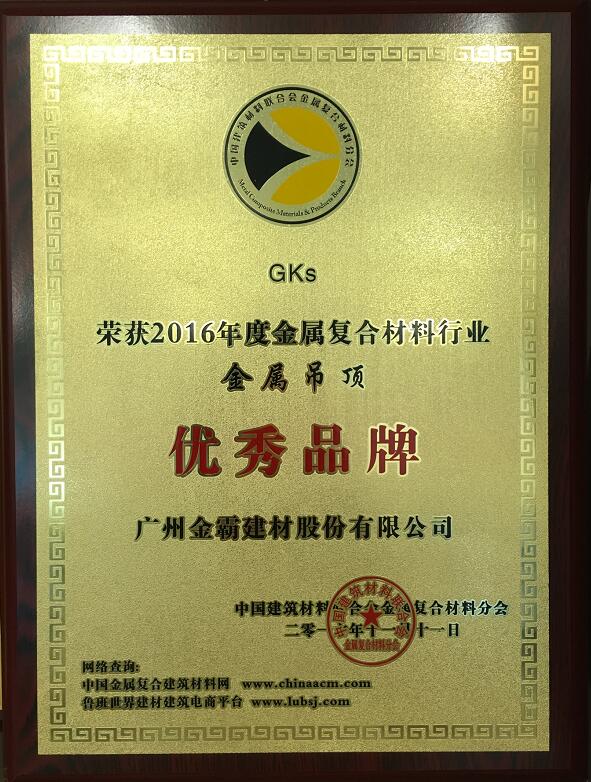 乐鱼网页版页面获评选“2016年度金属复合材料行业金属吊顶优秀品牌”,并于2016年11月11日,在北京人民大会堂举行颁奖仪式,由中国建筑材料联合会金属复合材料分会进行颁奖。