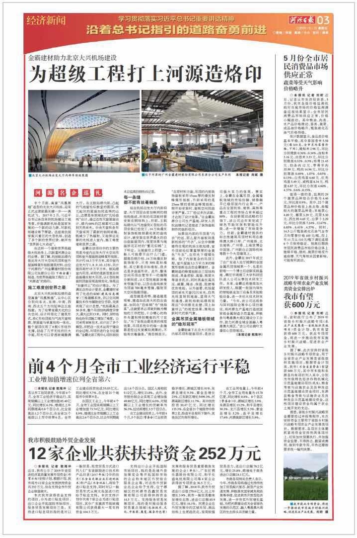 金霸北京大兴机场项目获河源日报采访报道