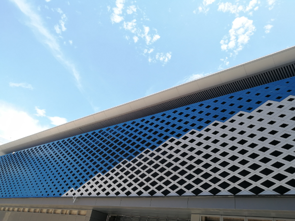 深圳国际会展中心的外墙独特多变,采用了氟碳造型铝单板、造型铝单板、一体板、造型蜂窝铝板等墙面产品,造型上具有一定的加工难度与安装难度。金霸为中心外墙主要供货商之一,外墙供货共16万余平方米。