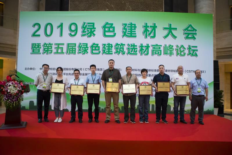 金霸参加2019绿色建材大会暨第五届绿色建筑选材高峰论坛并获颁牌
