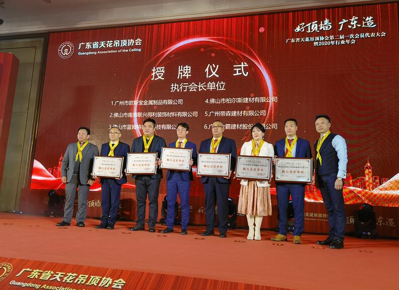 祝贺金霸当选2020年广东省天花吊顶协会第二届代表大会执行会长单位