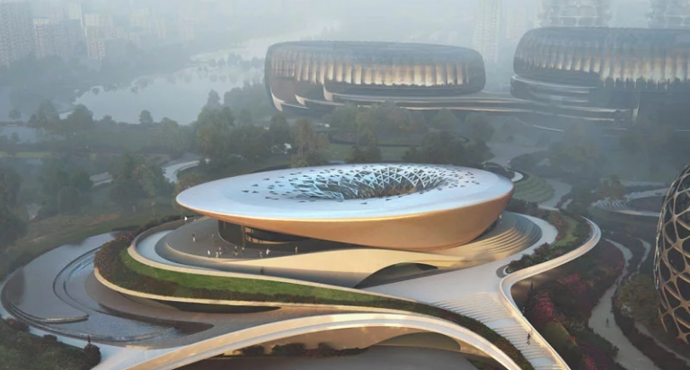 01-172020扎哈·哈迪德建筑事务所在中国成都“独角兽岛”首座建筑即将完工