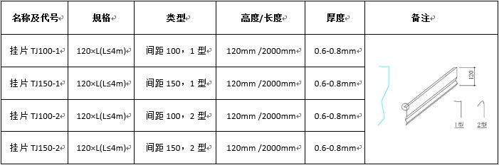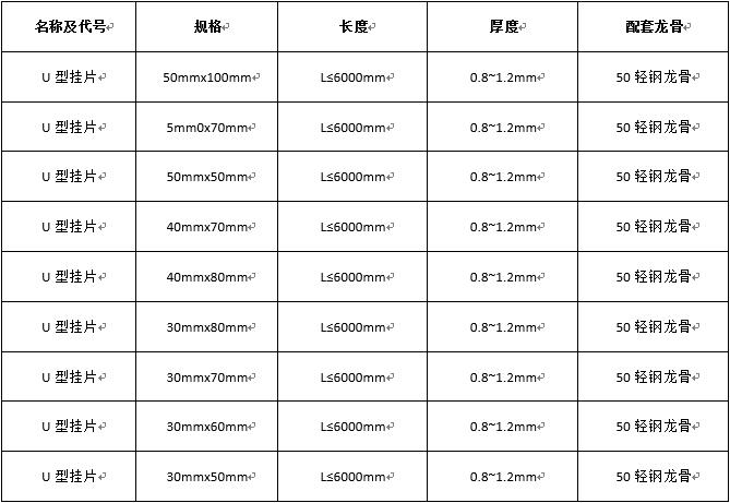 U型挂片规格表
