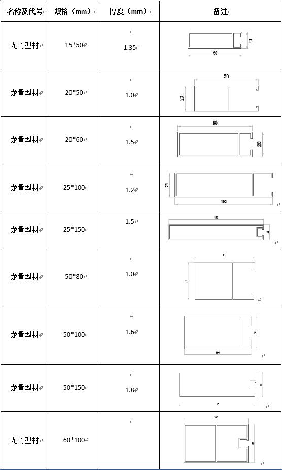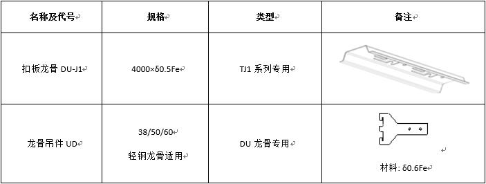 配套龙骨及吊件规格表