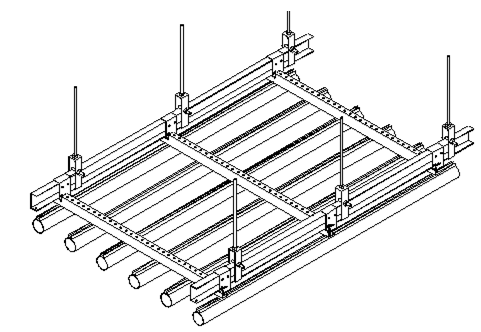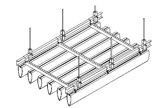 管之间间距无固定要求,可灵活组合各种各样的造型,系统取用专用吊码吊装,无主副龙骨。