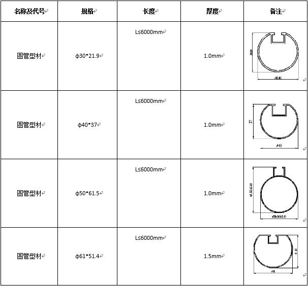圆管规格尺寸表